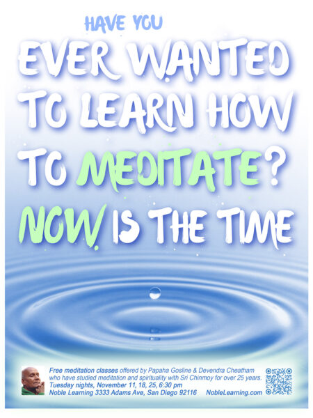Learn the simple, effective meditation techniques–and other helpful practices–recommended by esteemed spiritual teacher Sri Chinmoy (1931-2007). All classes are led by his students who have practiced meditation for many years.