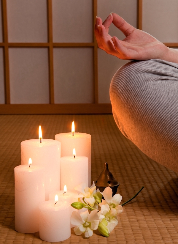 5. Gently open your eyes just enough to let light in. Rest them on either a candle flame or a flower that you have in front of you. Don’t think about anything just allow you attention to be focus on the object in front of you.